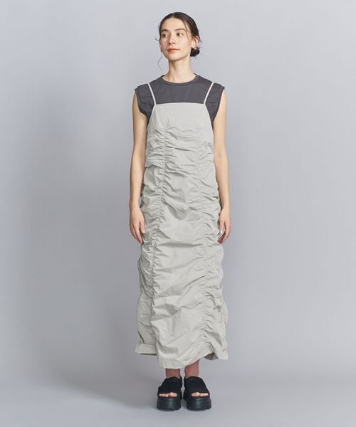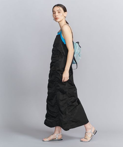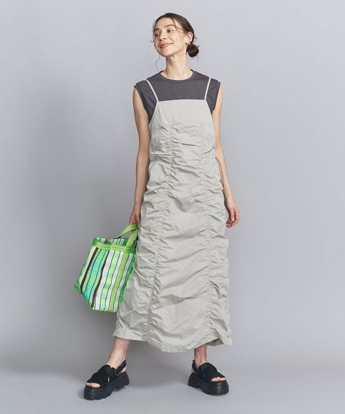 スポーティなムードで旬スタイル。アレンジを楽しむドローストキャミワンピース。