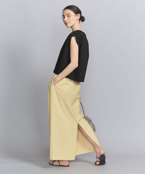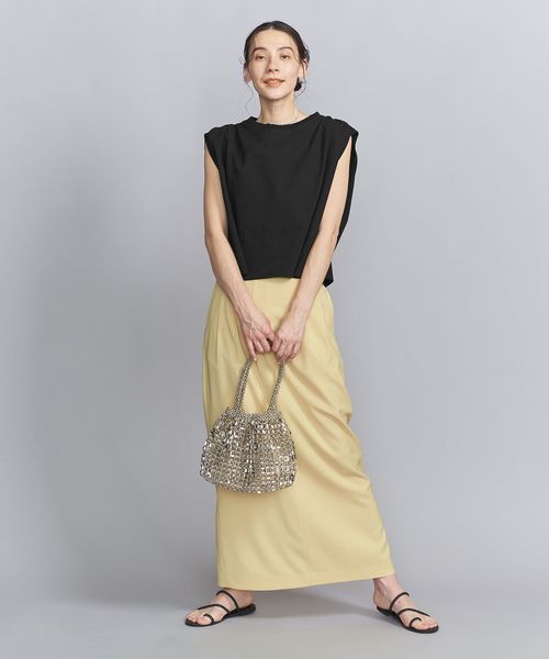 特徴的なデザインが映えるようすっきりとしたフレンチスリーブに仕上げることで、品のあるカジュアルスタイルを演出してくれます。