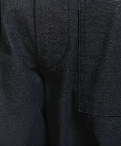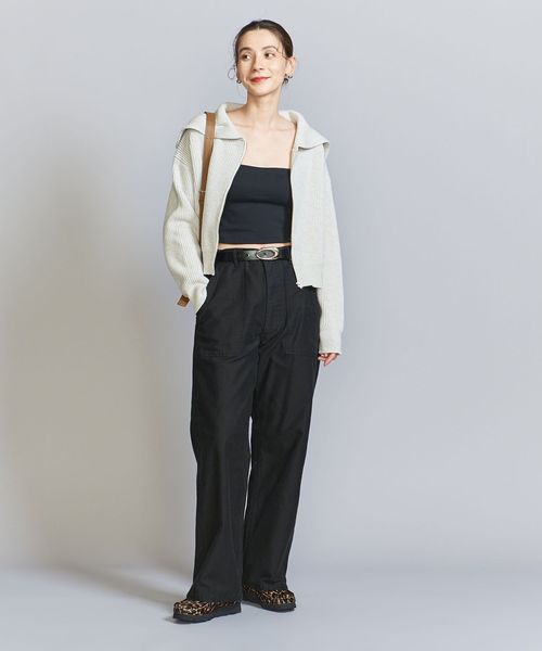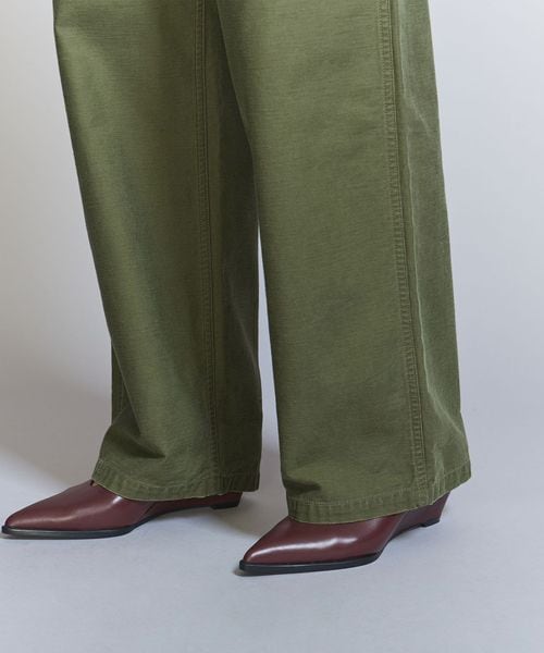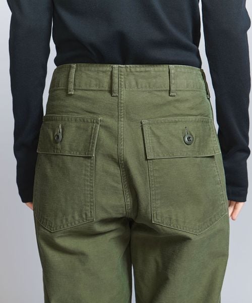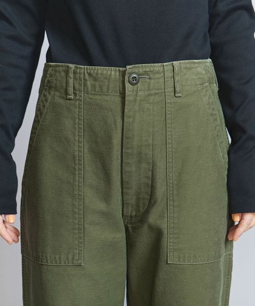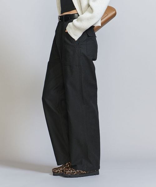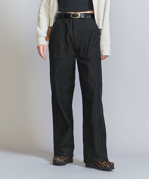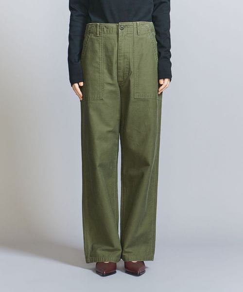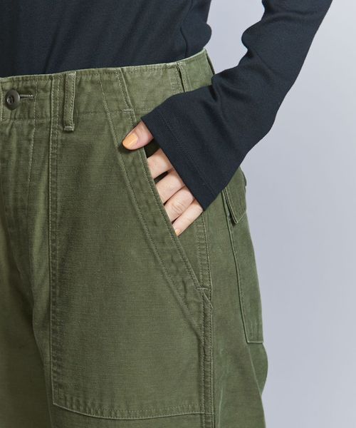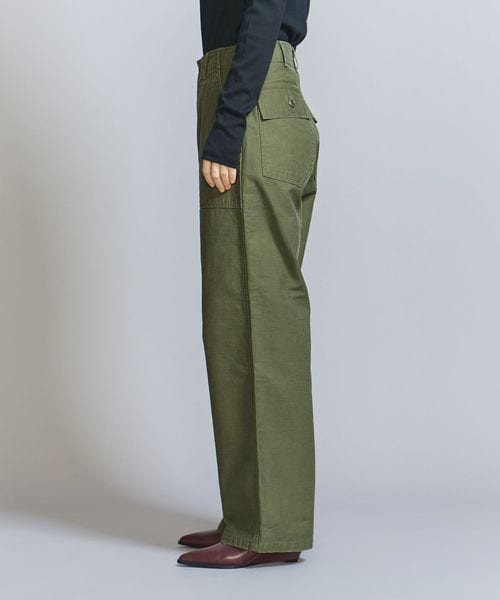 女性がはきこなしやすいワイドストレートシルエットのファティーグパンツ。