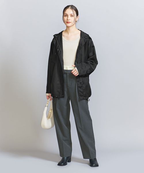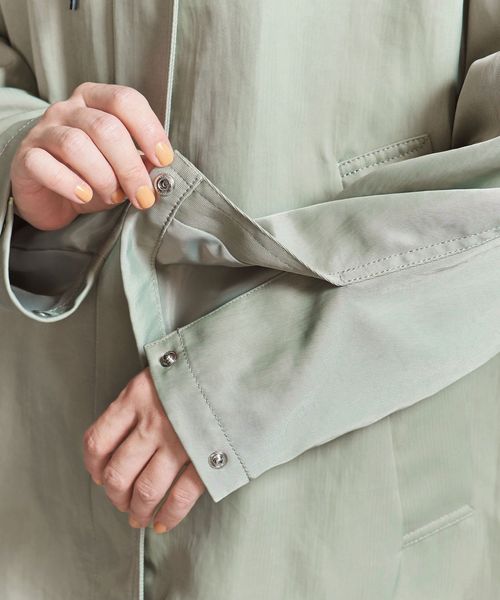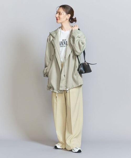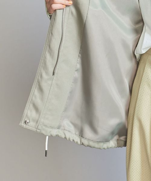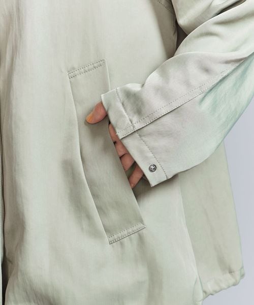 生地の光沢とステッチの少ないスポーティーなディテールできれいめな印象に仕上げました。