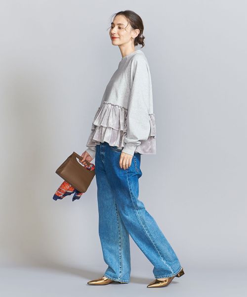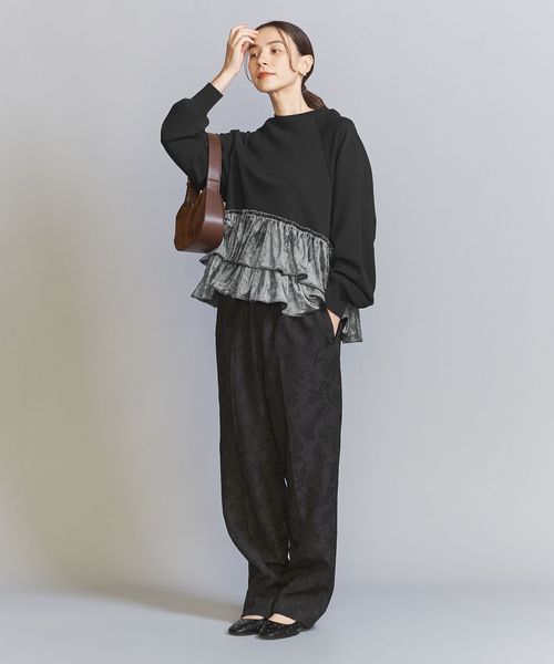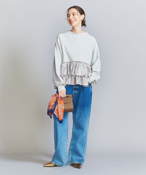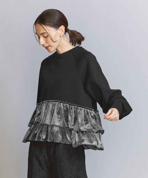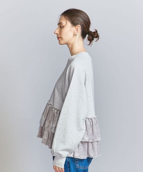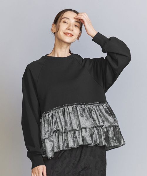 秋ムード薫る、スポーティ&ガーリーな異素材コンビトップス。