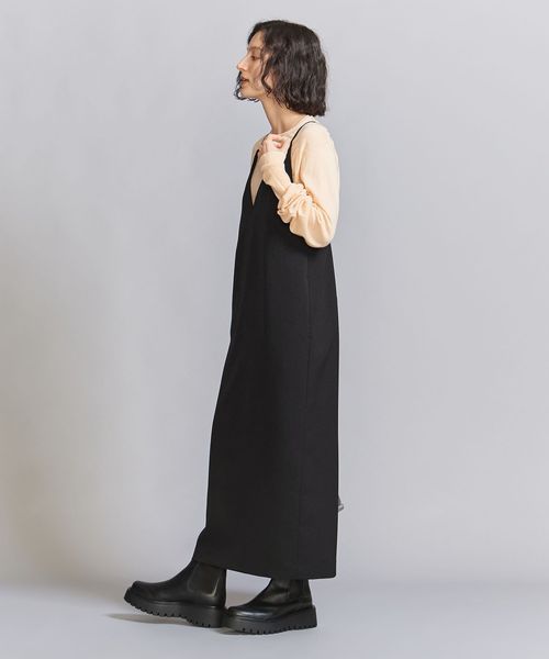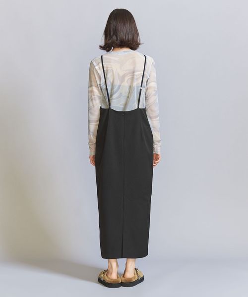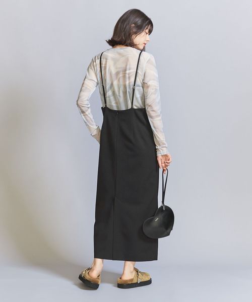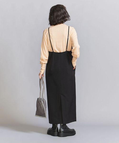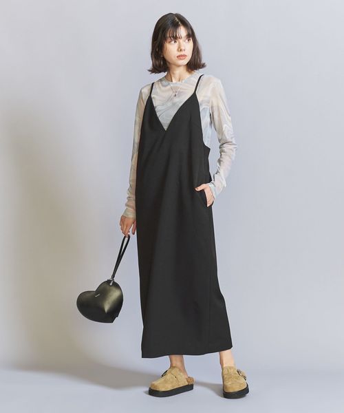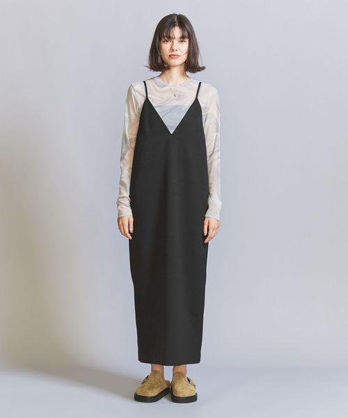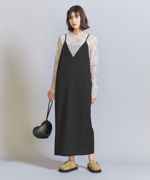 上品見えするレイヤードスタイルが叶う、シンプルなナローラインのキャミワンピース。