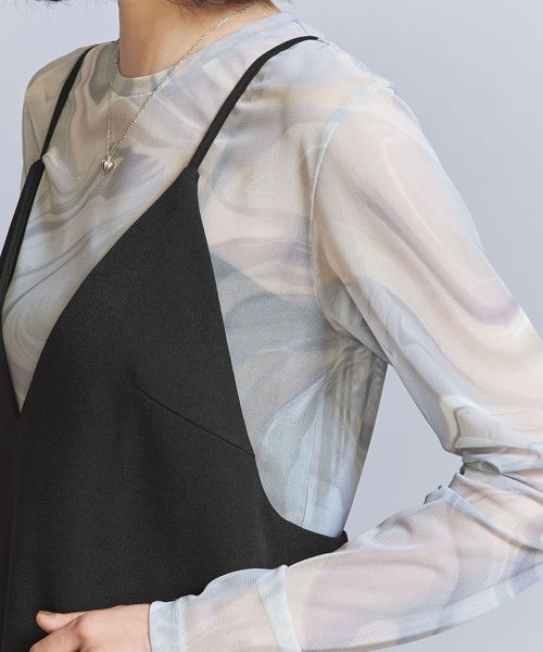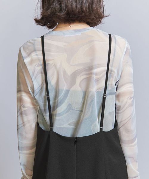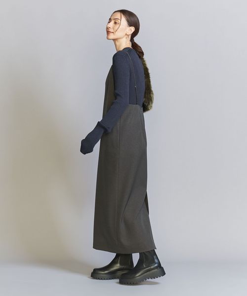 長めの着丈に、Vのカッティングを深めにすることで、大人っぽくフェミニンになりすぎないように仕上げています。