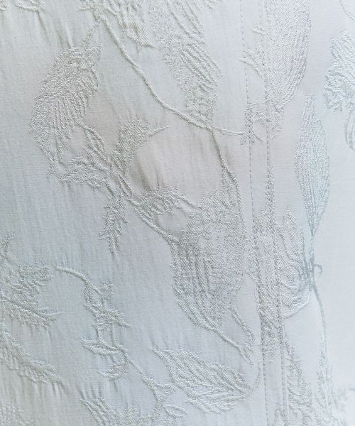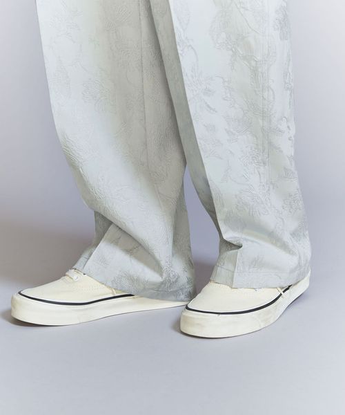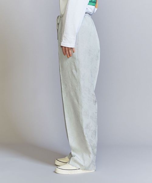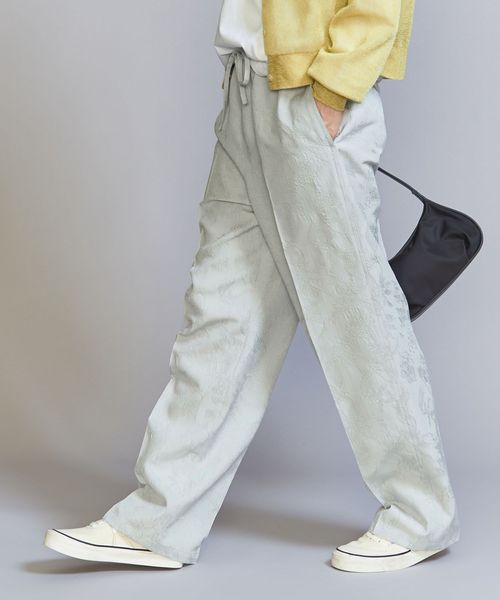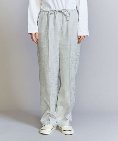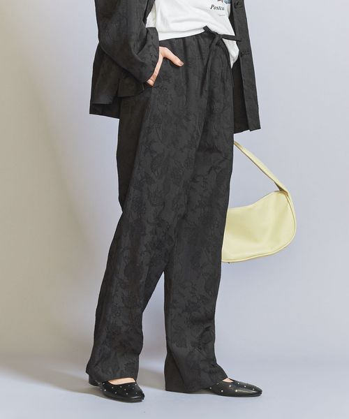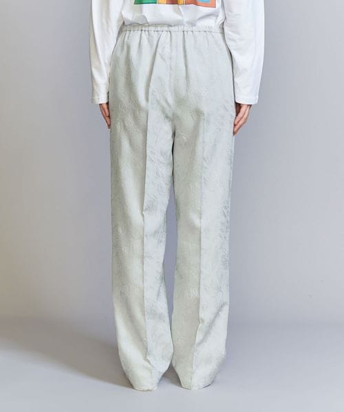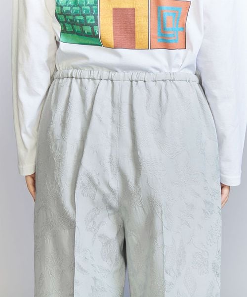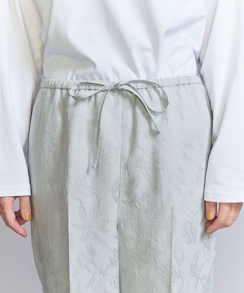 ジャカードの浮き出る柄部分にブライトレーヨン糸を使用し、上品な光沢を表現したオリジナル柄のチャイナパンツ。