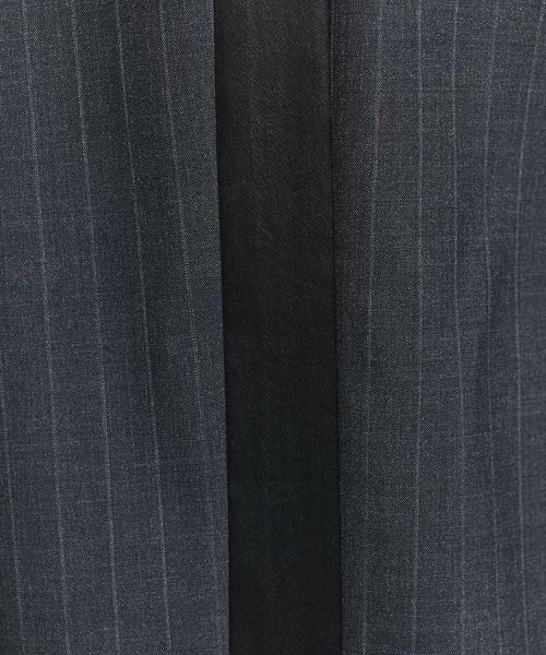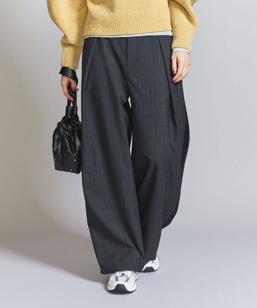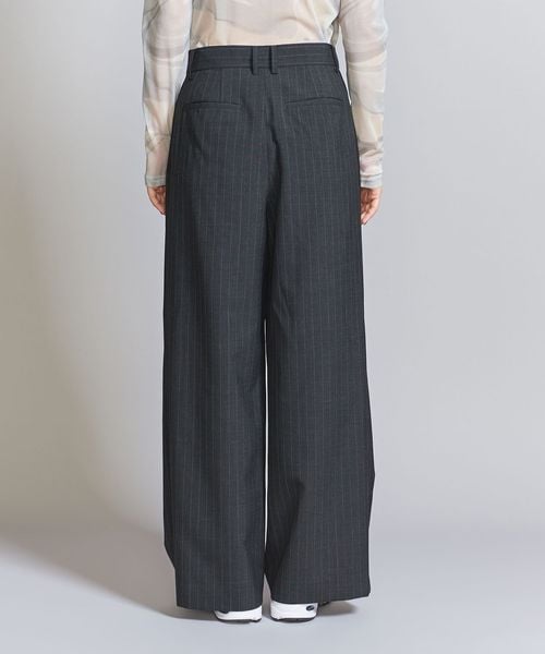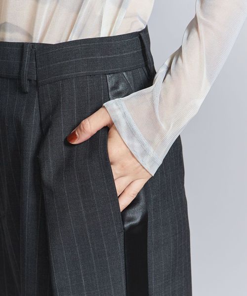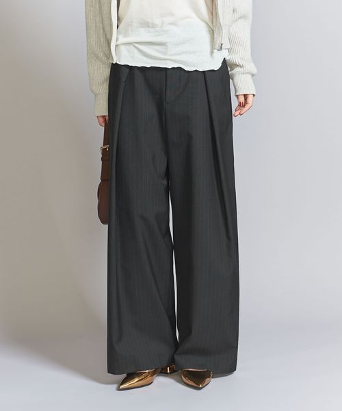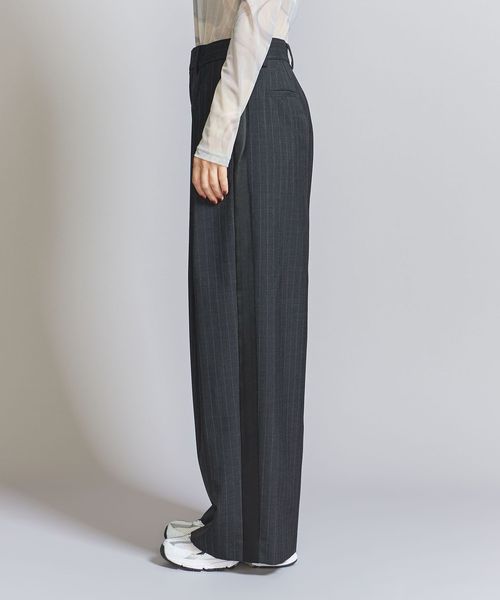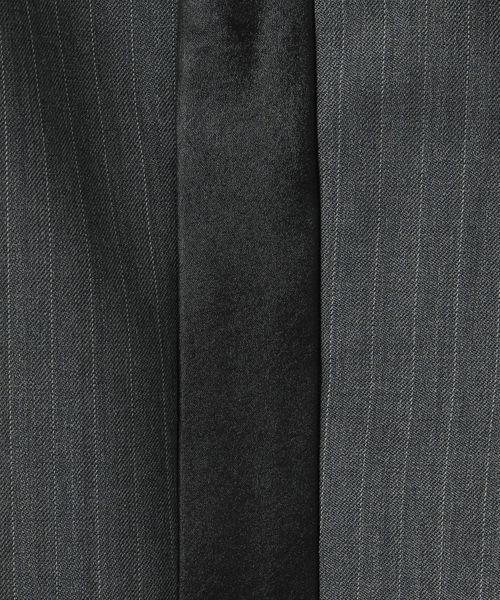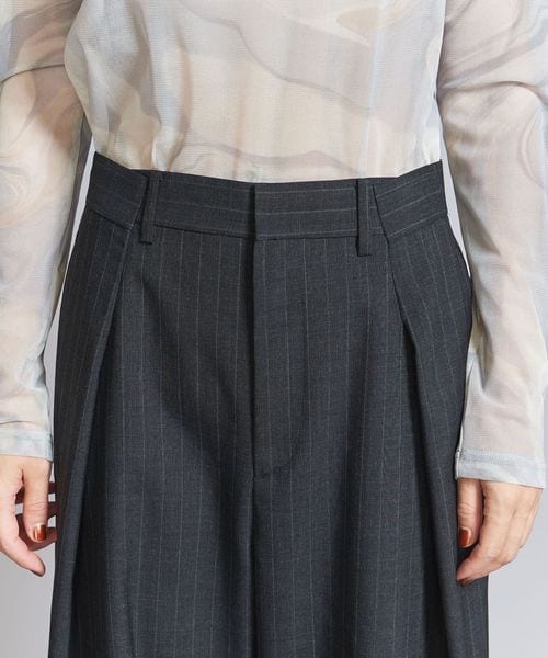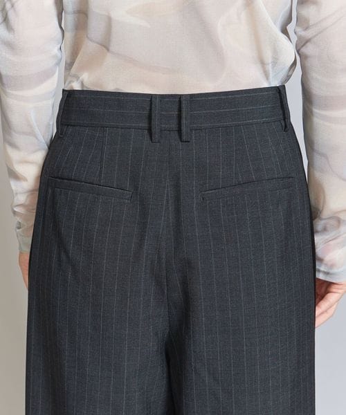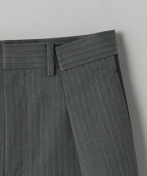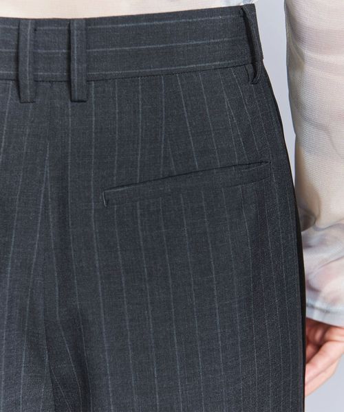 チョークストライプ生地を使用し、メンズのスラックス風に仕上げているのが魅力。