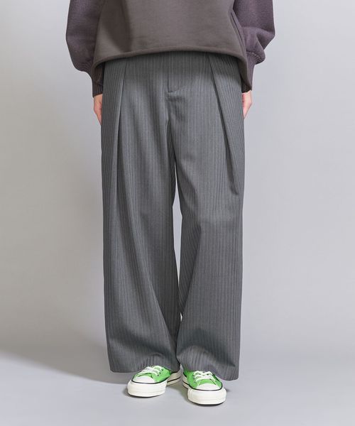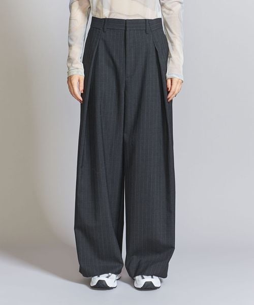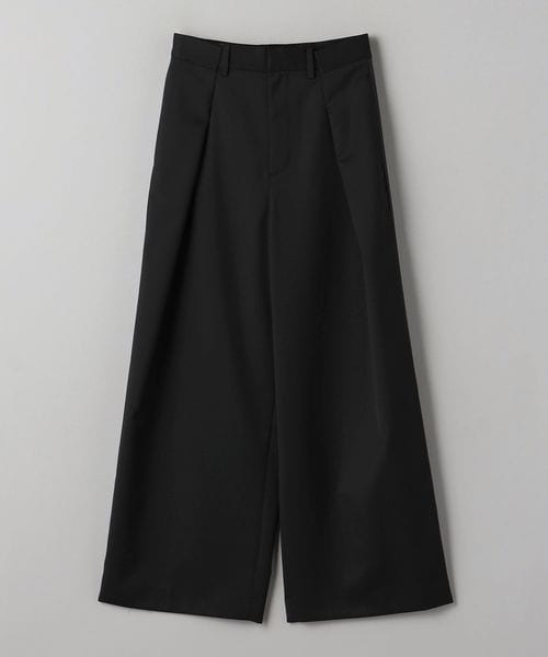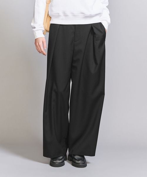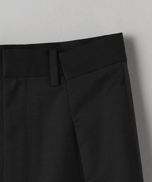 タックを大きくとり、ベルトから縫い合わせたようなトレンドライクなディテールも特徴です。
