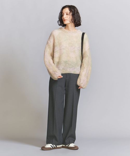 毛足の長いニットやスウェットなど、ボリュームシルエットのトップスとも好相性。