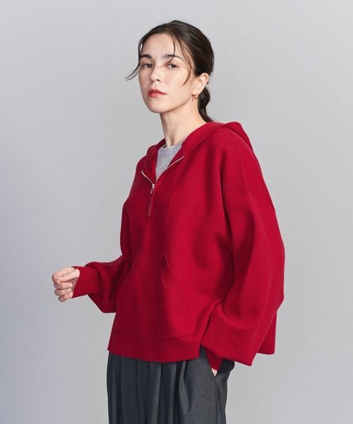 ジップ仕様でインナーレイヤードも楽しんでいただける、旬なニットプルオーバーをぜひ。