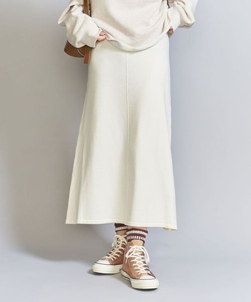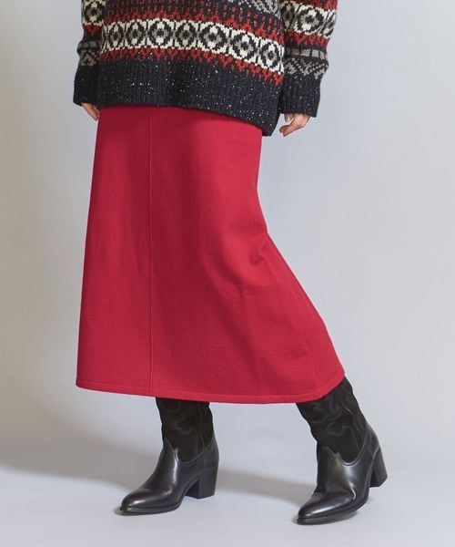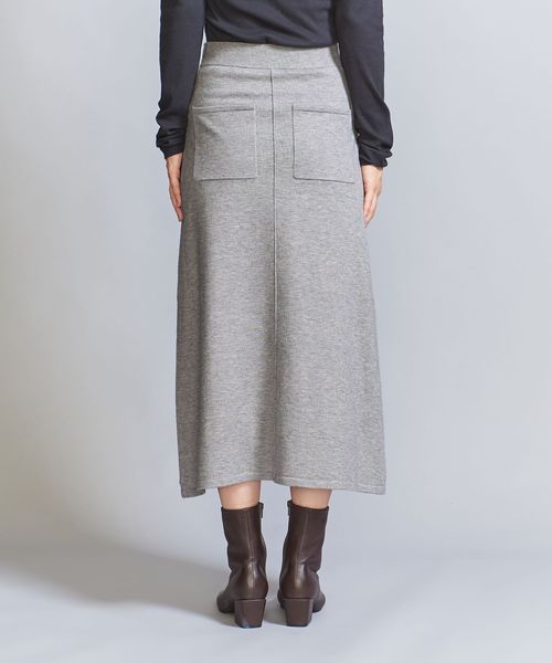 パッチポケットがバックスタイルにアクセントを添えるフレア型ニットスカート。