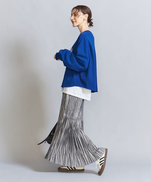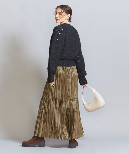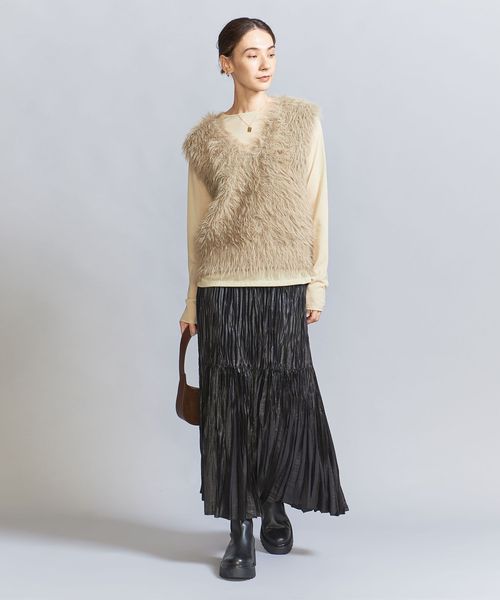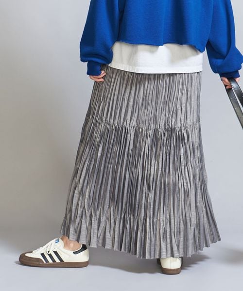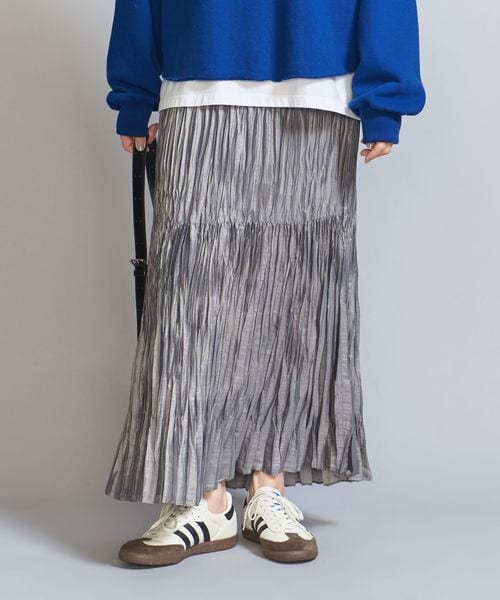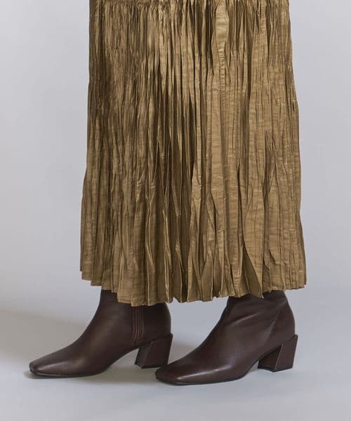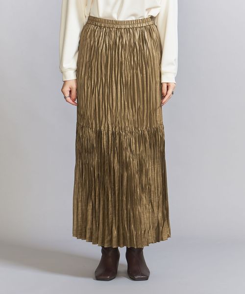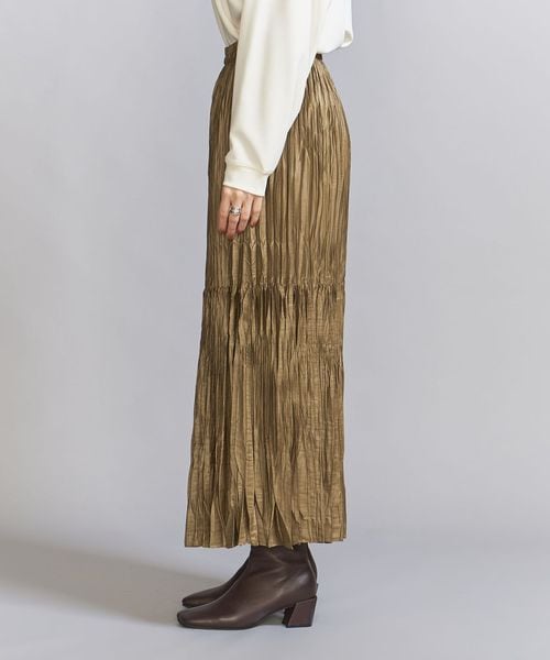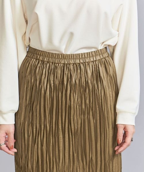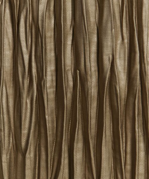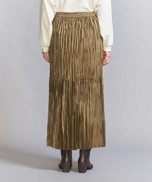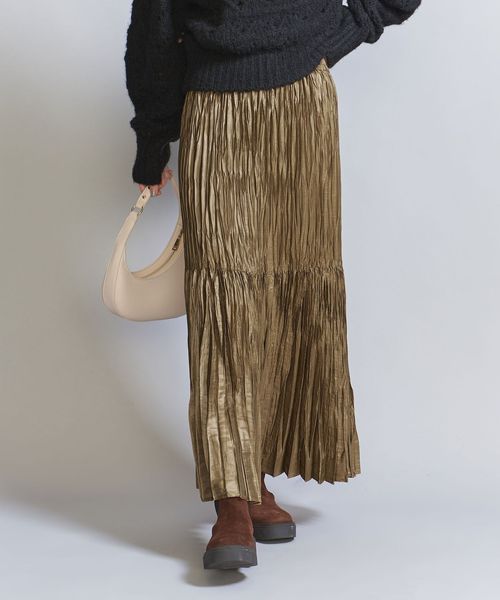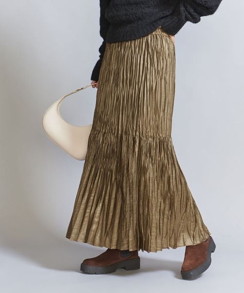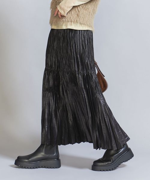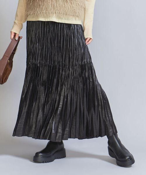 レザーライクな光沢感が特徴のランダムプリーツスカート。