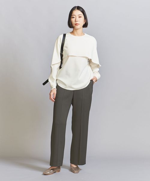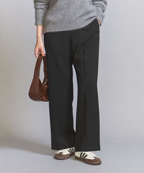 セレモニーやお仕事のかっちりとしたオンスタイルから、カジュアルミックスまで幅広く活躍する、飽きの来ない万能パンツです。