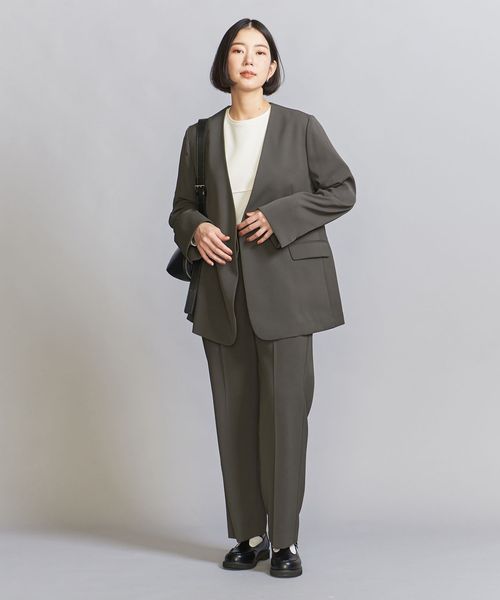 同素材のジャケットとのセットアップスタイルや、単品でのカジュアルトップスとのコーディネートもおすすめ。