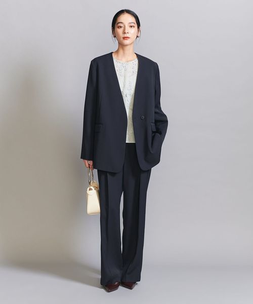 セットアップで着用すれば、お仕事用はもちろんセレモニーシーンにも活躍するワードローブに加えたいアイテムです。