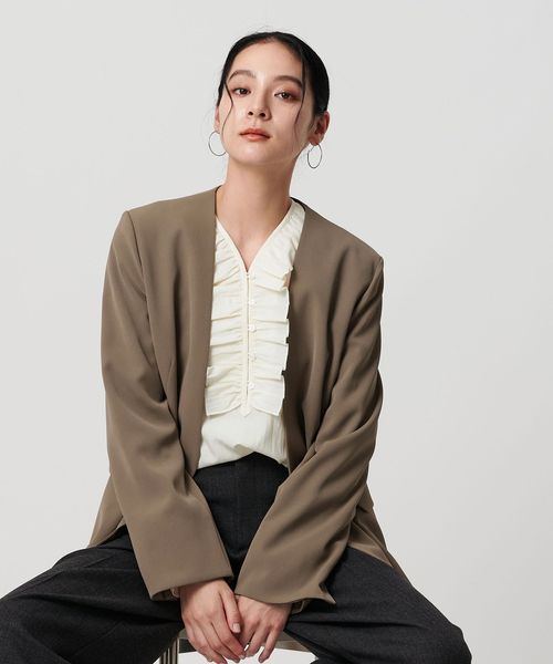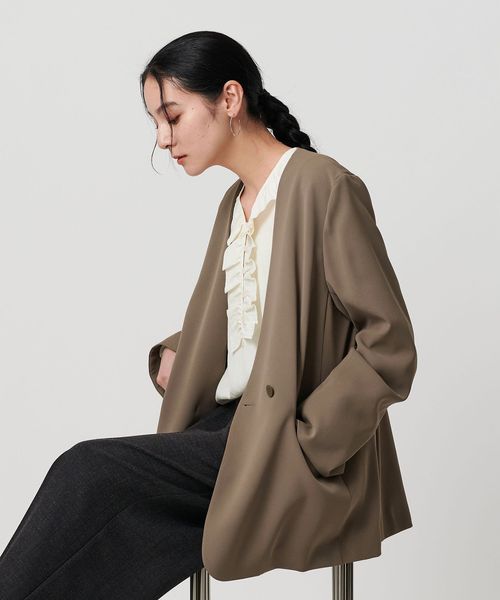 ほどよくゆとりのあるサイジングにこだわってお作りした抜け感のあるカラーレスジャケット。