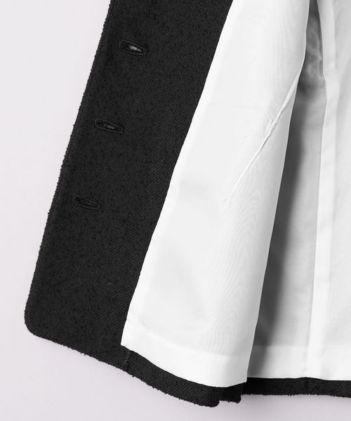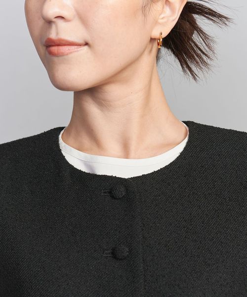 ツイードタッチの素材感を活かしたシンプルなデザインで、お仕事やセレモニー、デイリー使いまで幅広いシーンで活躍する一着です。
