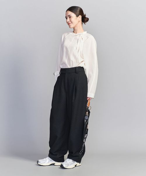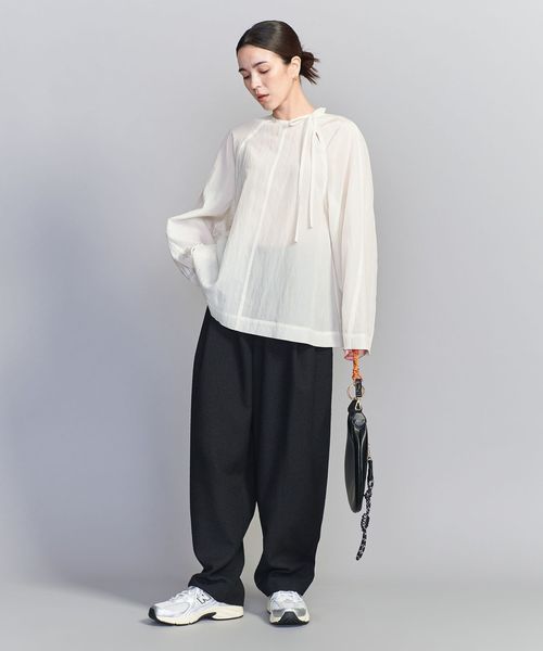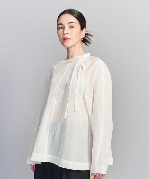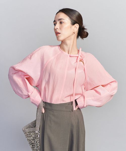 カジュアルにこなせるタイディテールが魅力の華やかブラウス