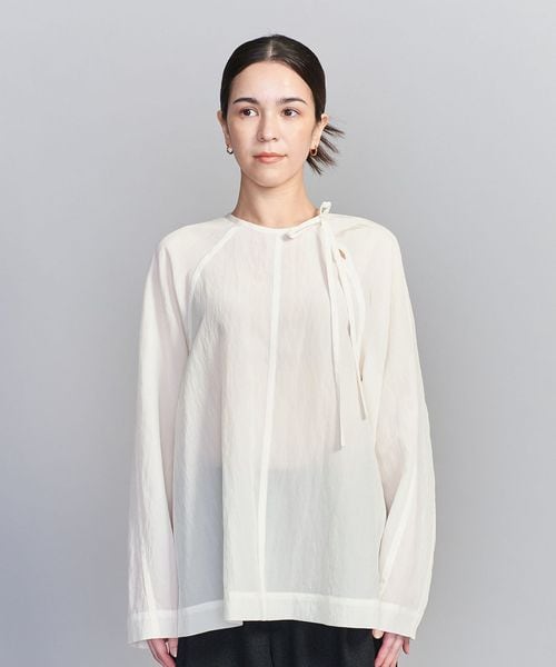 今シーズントレンドのリボンをサイドネックに施した映えブラウス。