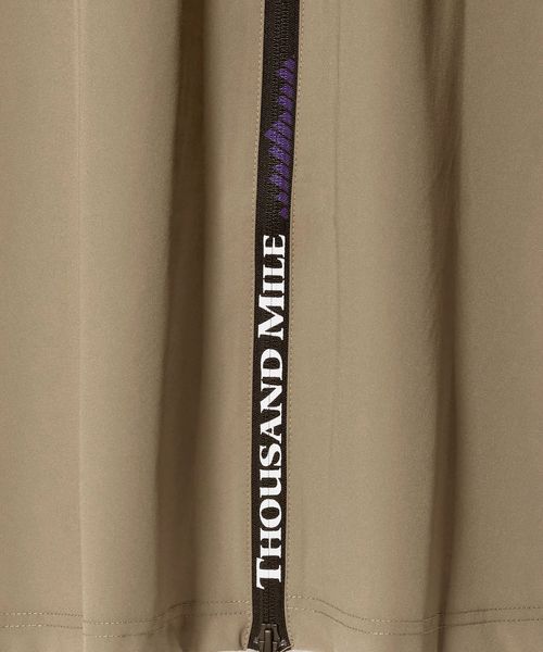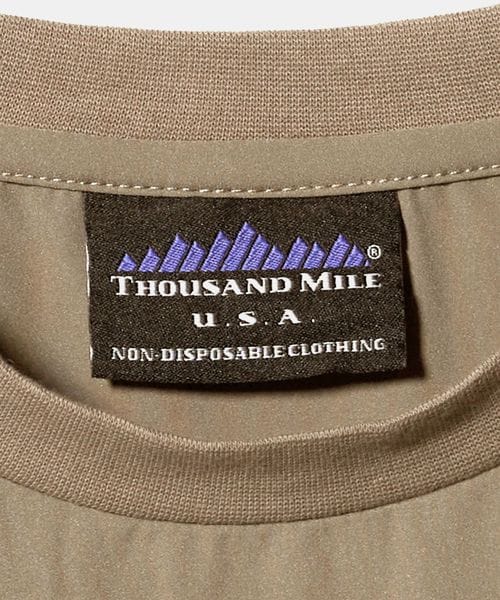 ブランド名はその名の通り”Thousand Mile”の長旅に出かけるとき使ってもらいたいという思いを込めており、アウターやパンツ、Tシャツやスウェットといったウェアを中心に展開しています。