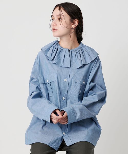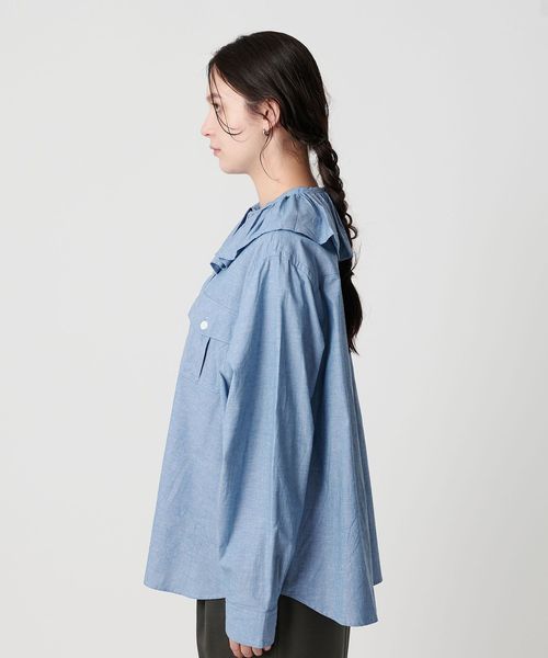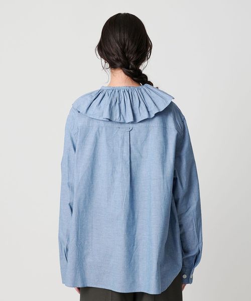 フリルディテールがポイントのブラウス。