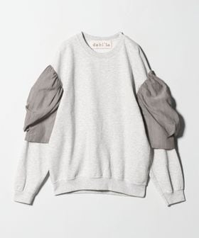パワーショルダーのデザインが目を引く<dahl'ia>のスウェットプルオーバー。