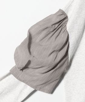 ストライプ柄の別布がアクセントになった袖は、ギャザーとタックが施された立体感のあるシルエットが目を引きます。