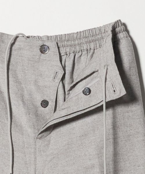 バックゴム仕様のリラックス感がありながら、シェルボタンがさり気ない上品さを添えてくれます。