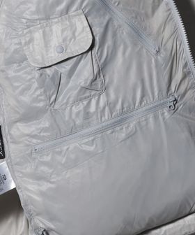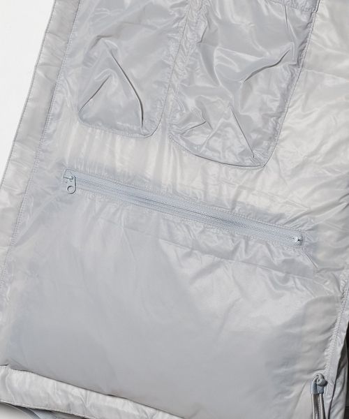 シンプルなルックスながらダブルジップや裾のドローコードで調整が効く機能面と、内側に施された複数のインサイドポケットの優れた収納力も魅力な一着です。