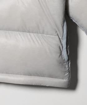 顔周りをすっきりと見せるスタンドカラーのダウンジャケット。