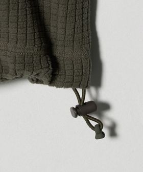 マイクロフリース素材を使用し細かい繊維を起毛させることでやわらかな風合いとなり、軽やかな着心地ながら適度な厚みと温かさを兼ね備えています。