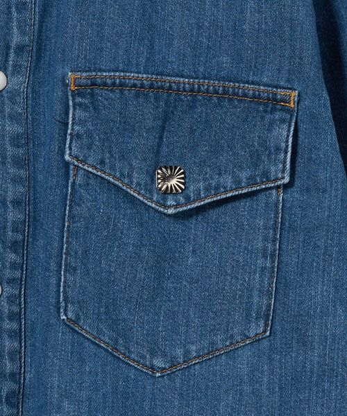 フラップポケットについたメタルコンチョやスナップボタンもアクセントになっています。