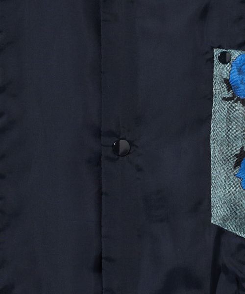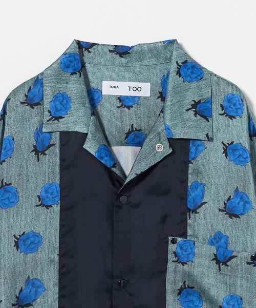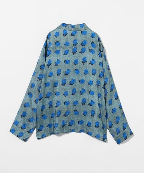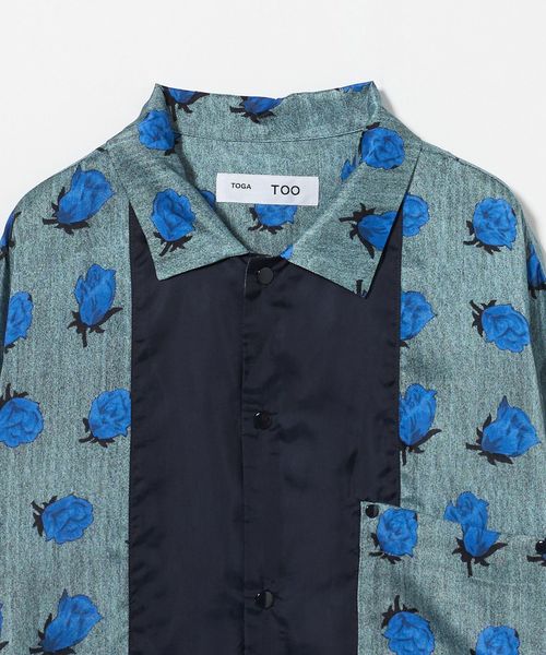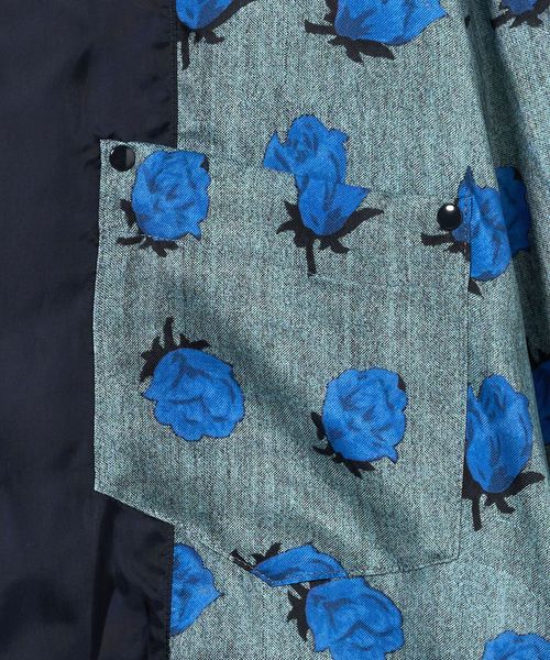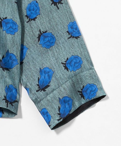 ブルーの薔薇が目を惹く個性的なプリントのシャツ。