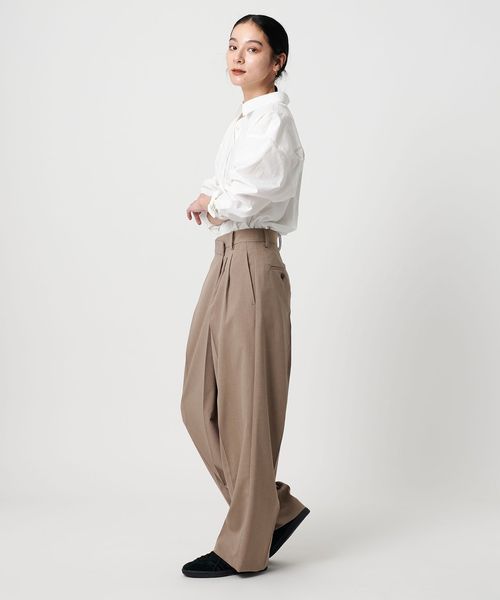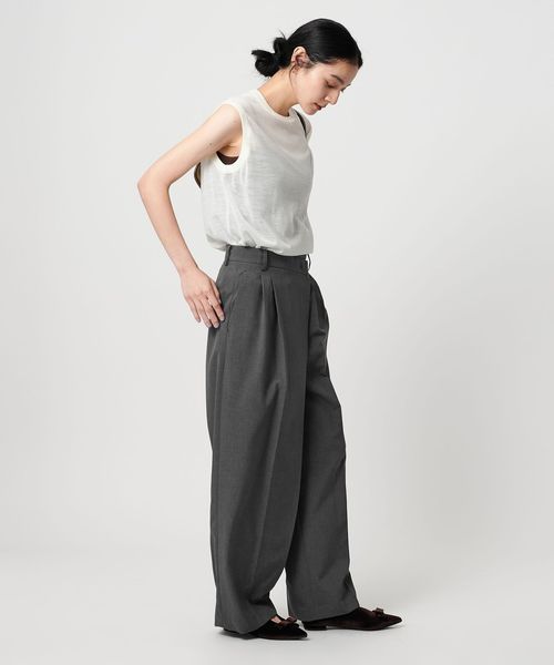 メンズスラックスのようなマニッシュな雰囲気が、大人の雰囲気漂う一着。