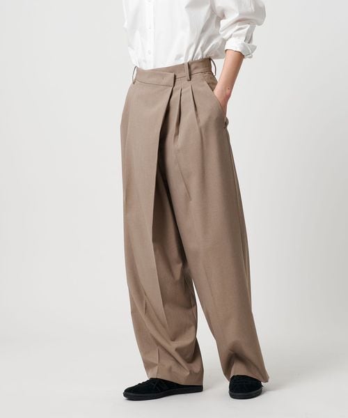 ラップ風ディテールがポイントの2タックワイドパンツ。
