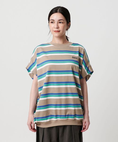 やわらかくさわやかな色使いがポイントになったマルチボーダーのトップス。
