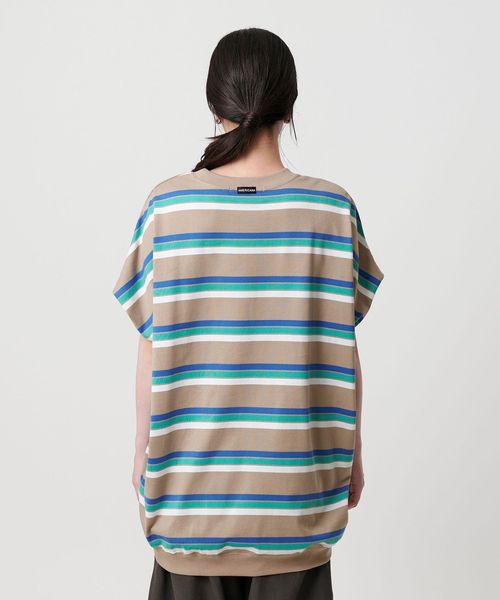 <Americana>マルチボーダー スリーブレス トップス/ベージュ