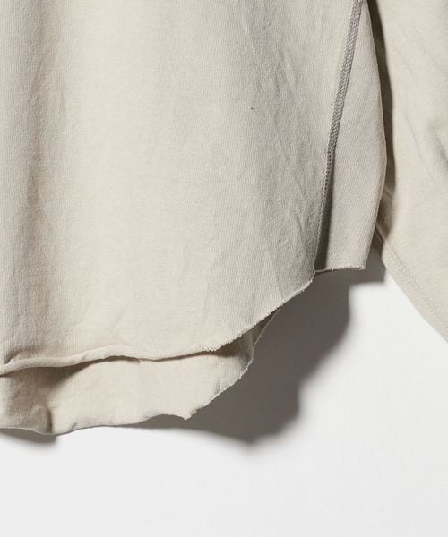 ワイドな身幅に、裾をカットしたような抜け感漂うラフな仕様が魅力。