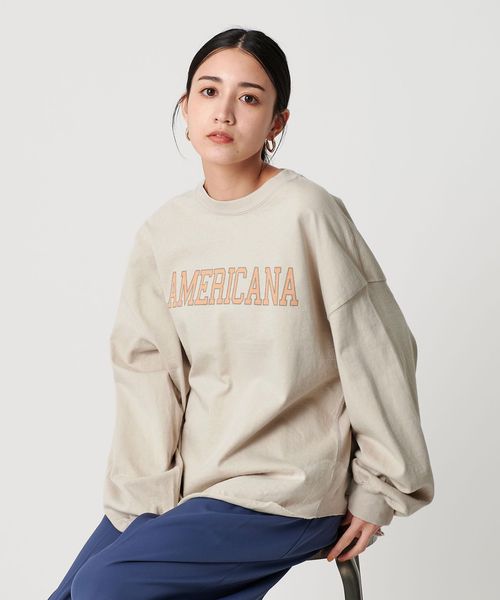 ヴィンテージライクな<Americana>のロゴロングスリーブTシャツ