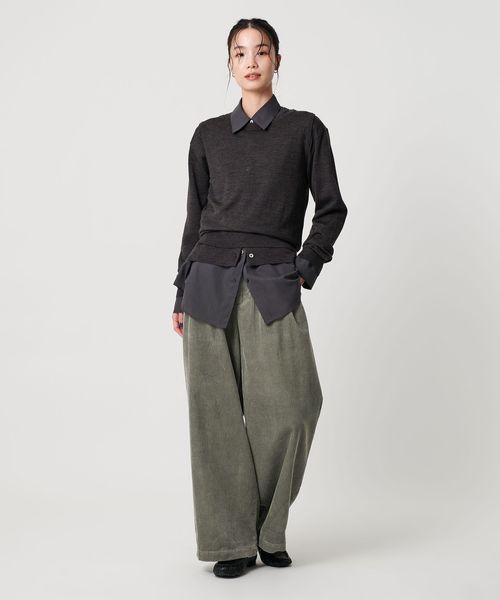 深みのあるダークブラウンとシックなオリーブのカラーコーデュロイでシーズンムードを加えた鮮度ある装いにおすすめのアイテムです。