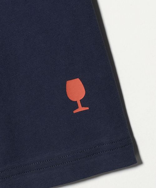 胸元のロゴのみならず、袖口にもさりげなくグラスのシルエットがプリントされた遊び心のあるデザインです。