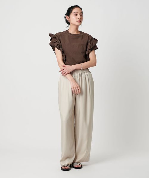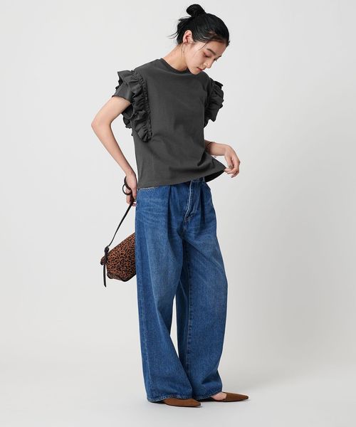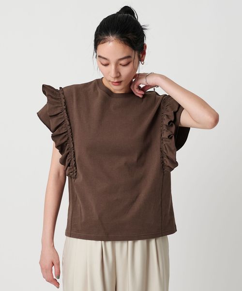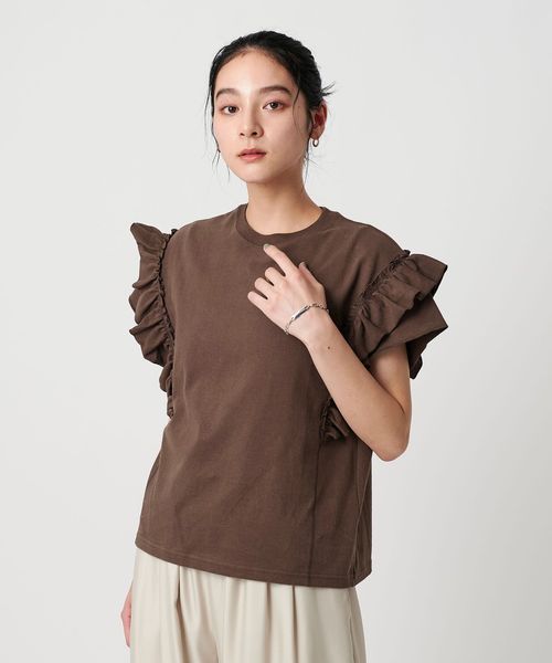 袖フリルが映えるフェミニンカジュアルなデザインカットソー
