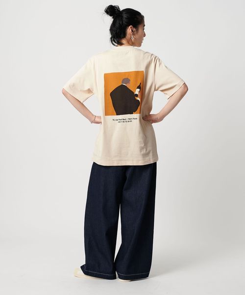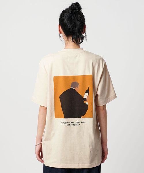 アート性のあるバックプリントが映える、パリの人気ビストロのTシャツ。