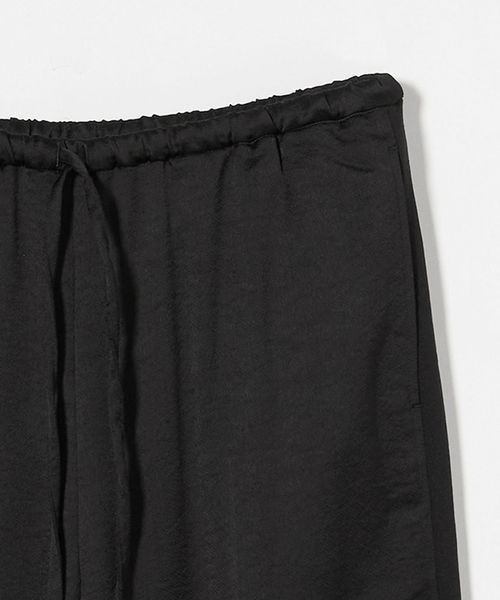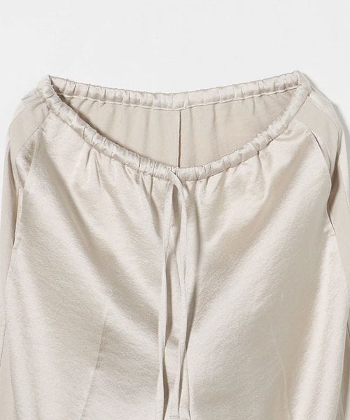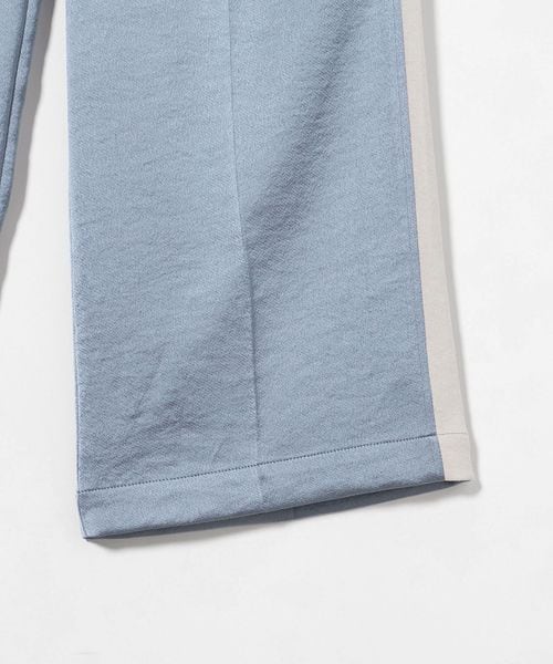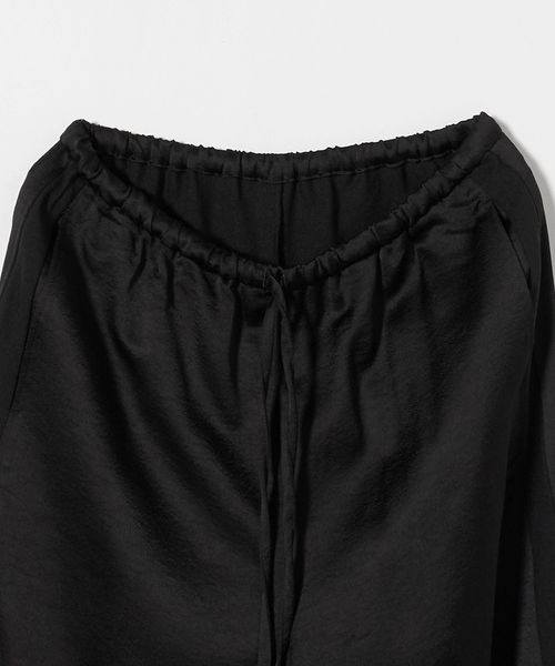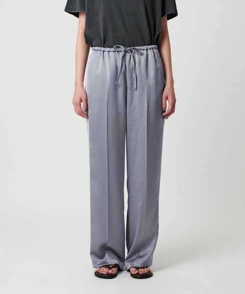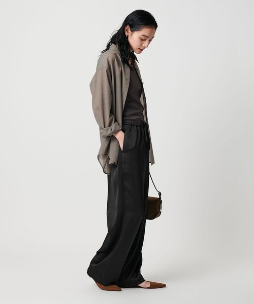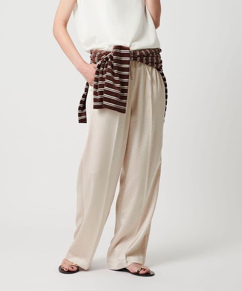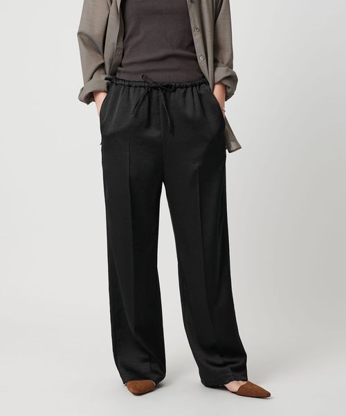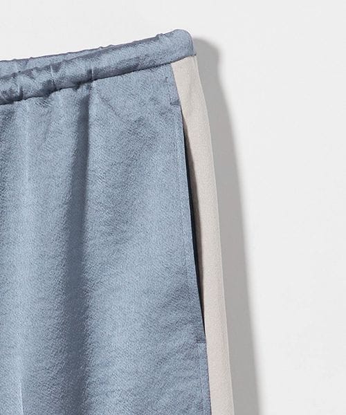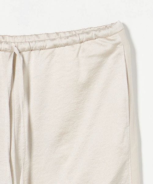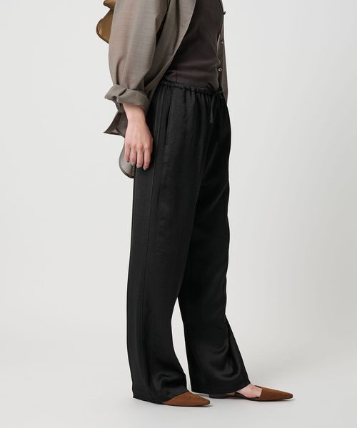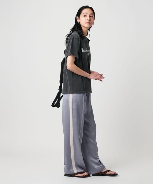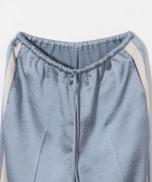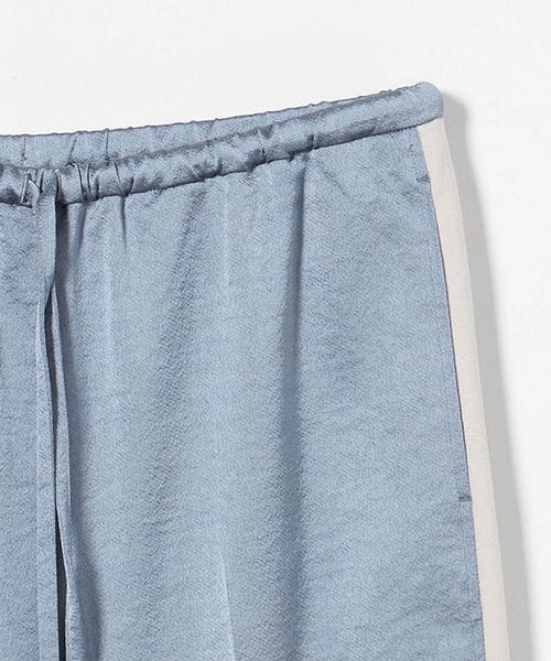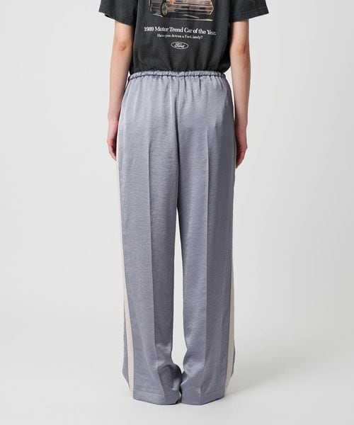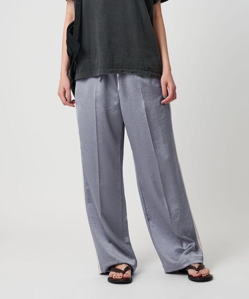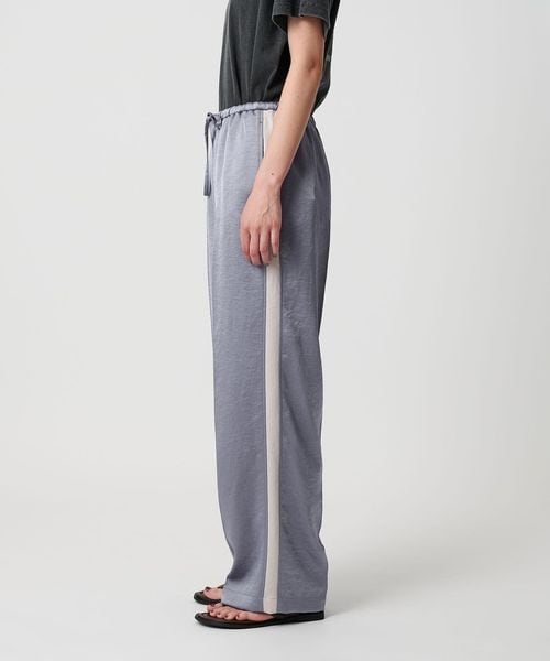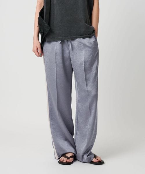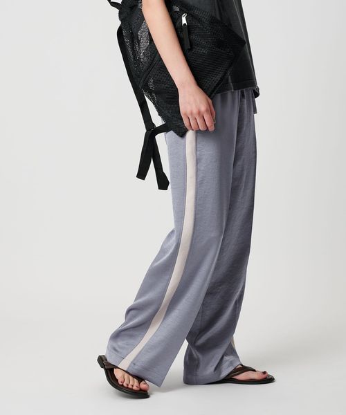 きれいめな印象のあるサテンパンツに、サイドラインを入れてカジュアルさをプラス。