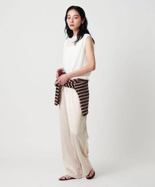 プリントTシャツと合わせた夏らしいカジュアルスタイルや、しなやかな素材感はきれいめなボリュームトップスとも好相性です。