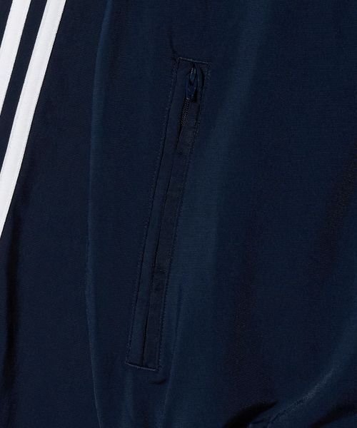 <adidas>の象徴であるスリーストライプスが袖に、トレフォイルロゴ刺繍が胸にあしらわれています。