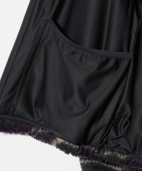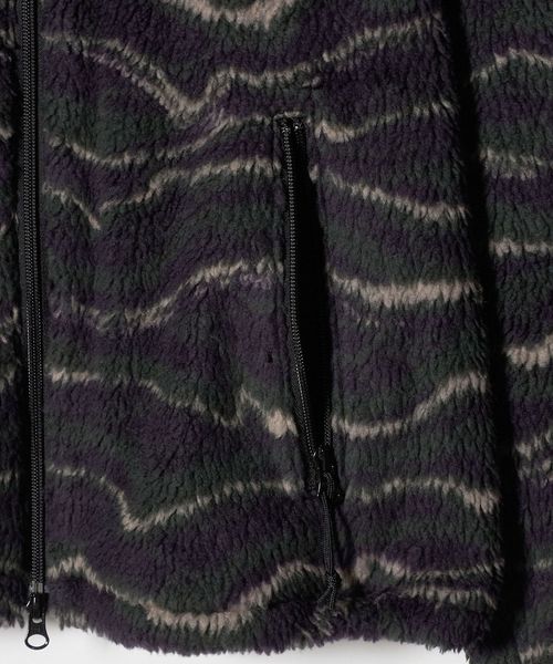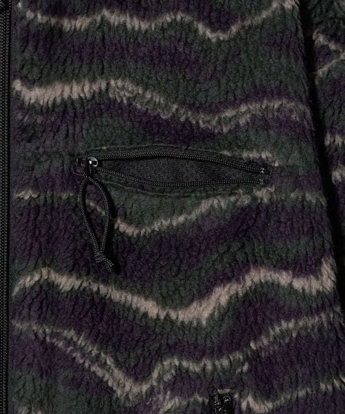 オリジナルのウェーブ柄が目を引くボアフリースジャケット。