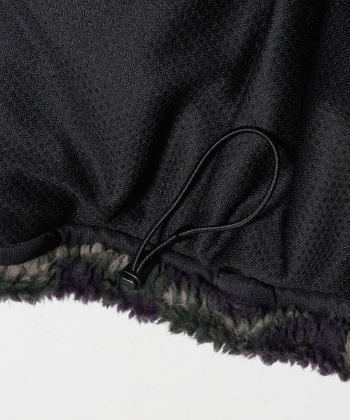 柔らかなボア素材を使用し、暖かさと軽やかな着心地を兼ね備えた寒い季節に重宝するアイテム。