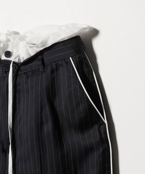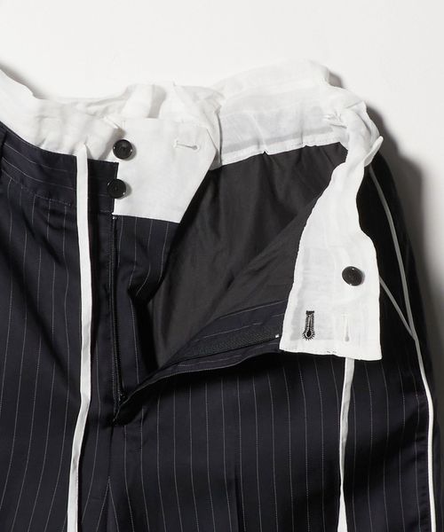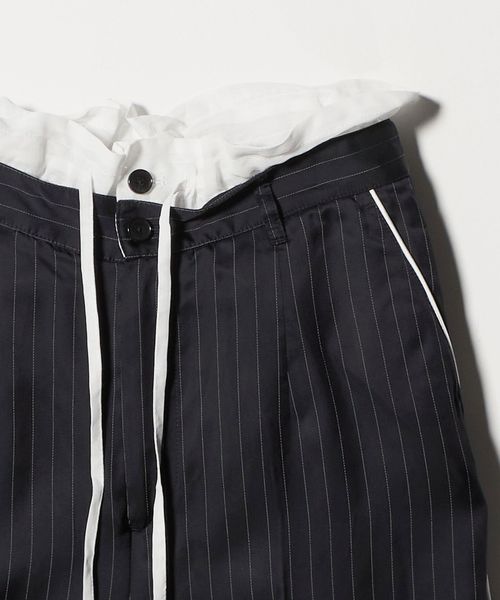 レイヤード風にドッキングさせたウエストディテールが印象的なパンツ。
