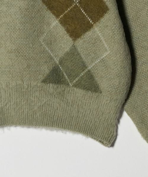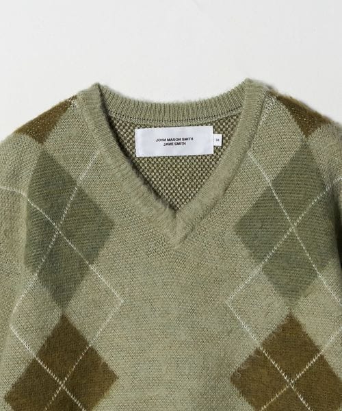 ジャガードでオリジナルのアーガイル柄を再現したVネックニットプルオーバー。