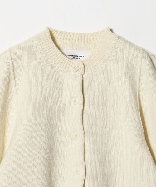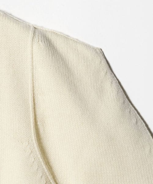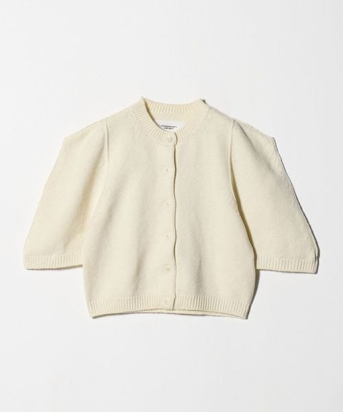ボリューム感のあるスクエアショルダーが特徴のクルーネックカーディガン。