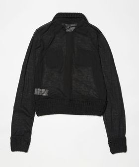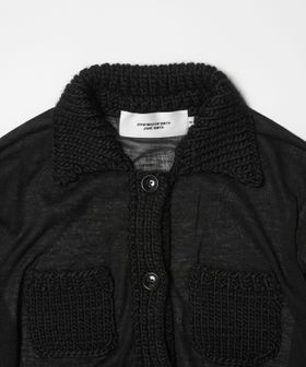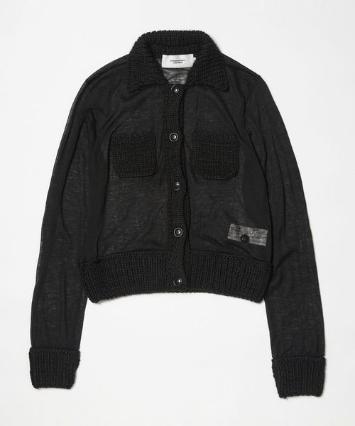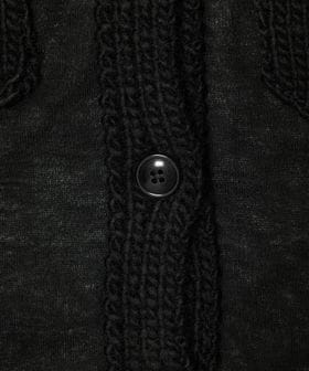 透け感のあるボディとローゲージで編まれたディテールの組み合わせが目を引くカーディガン。